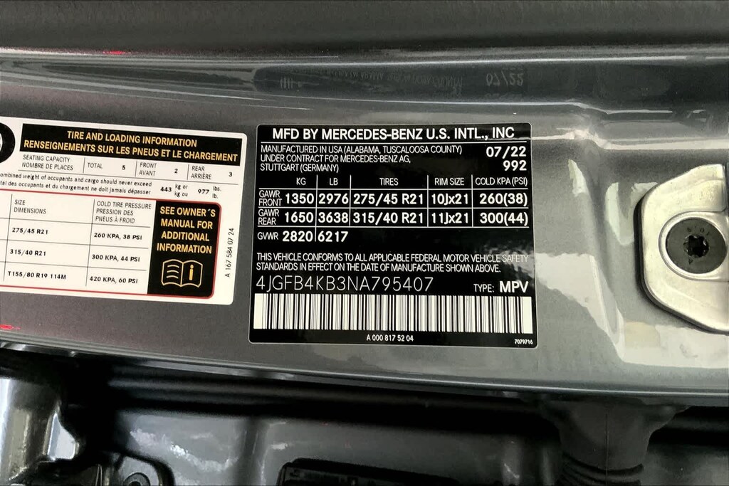 DRIVER ASSISTANCE PACKAGE PLUS: Route-Based Speed Adaptation, Active Emergency Stop Assist, Active Stop-and-Go Assist, PRESAFE® PLUS Rear Collision Protection, Active Distance Assist DISTRONIC®, Active Steering Assist, Evasive Steering Assist, Active Brake Assist w/Cross-Traffic Function, Active Blind Spot Assist, Active Speed Limit Assist, Traffic Sign Assist, Active Lane Keeping Assist, Active Lane Change Assist, PREMIUM PACKAGE: Parking Assist Code, Surround View System, 115V Power Outlet, Burmester® Surround Sound System, WHEELS: 21 AMG® MULTISPOKE: Tires: 275/45R21 Fr & 315/40R21 Rr, PANORAMA POWER TILT/SLIDING SUNROOF, ILLUMINATED RUNNING BOARDS: side sill panels painted in black, ROOF SPOILER, TRAILER HITCH: Increased Towing Capacity, VENTILATED FRONT SEATS, PASSENGER SEAT MEMORY, MBUX AUGMENTED VIDEO FOR NAVIGATION, HEATED STEERING WHEEL.