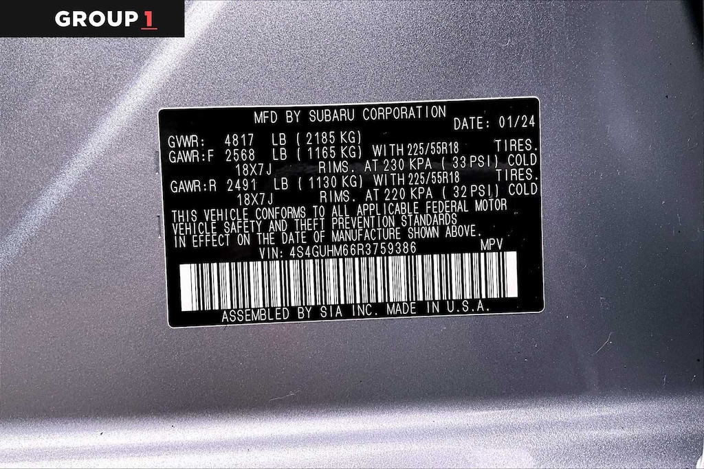 - Front tires: 225/55VR18.0