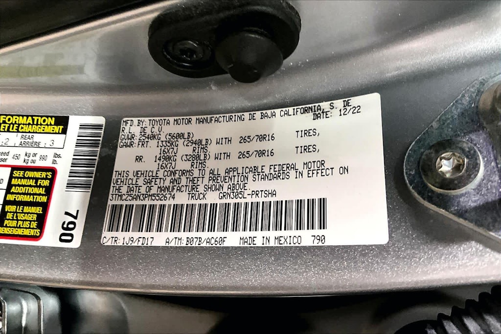 • Rear tires: 265/70SR16.0