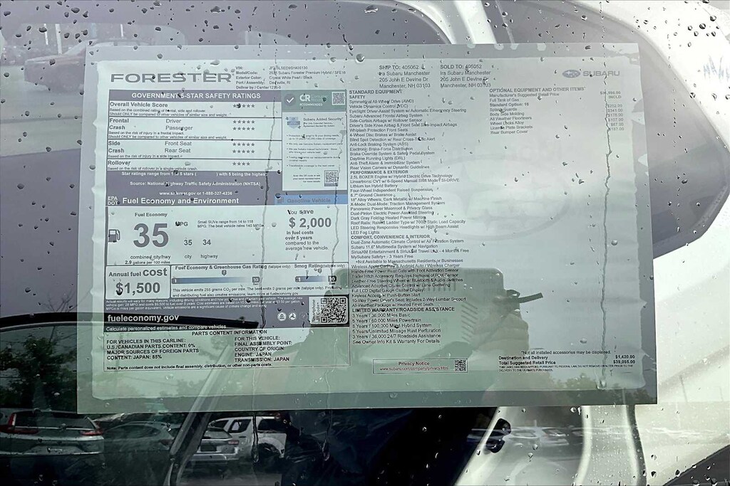 I bought this recently from Granite Subaru in Hudson, NH and I am so pleased I did. The Premium trim comes with great features AWD, Multiple cameras for safety, lane departure alert, 12" Media Screen with CarPlay, Panaramic Sunroof, roof racks, and much more. The size, features and gas mileage fit my life perfectly.