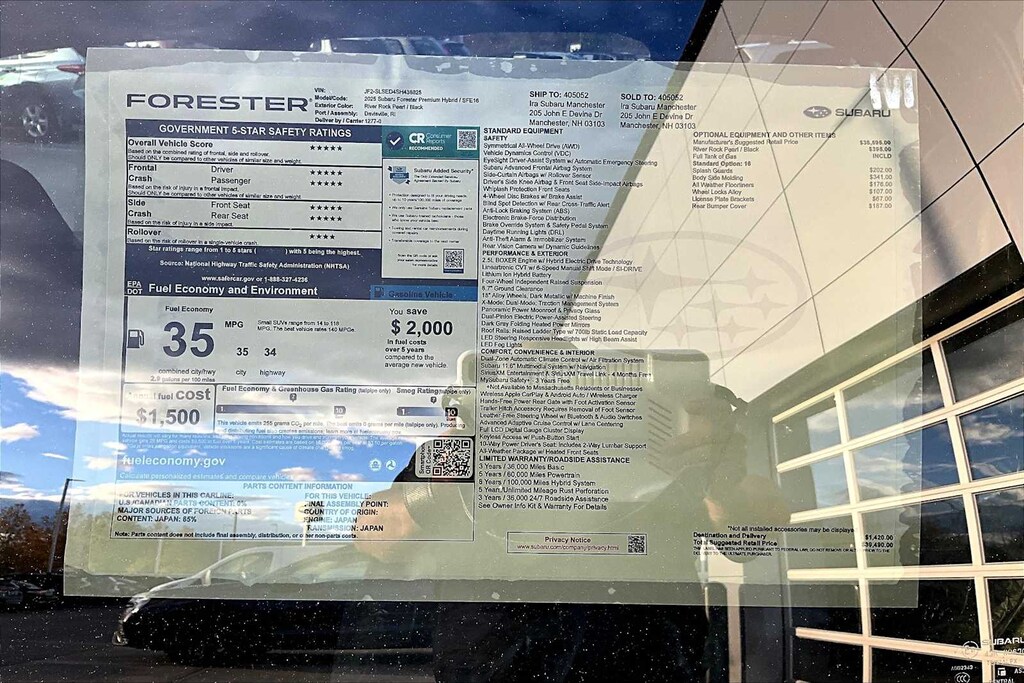 I bought this recently from Granite Subaru in Hudson, NH and I am so pleased I did. The Premium trim comes with great features AWD, Multiple cameras for safety, lane departure alert, 12" Media Screen with CarPlay, Panaramic Sunroof, roof racks, and much more. The size, features and gas mileage fit my life perfectly.