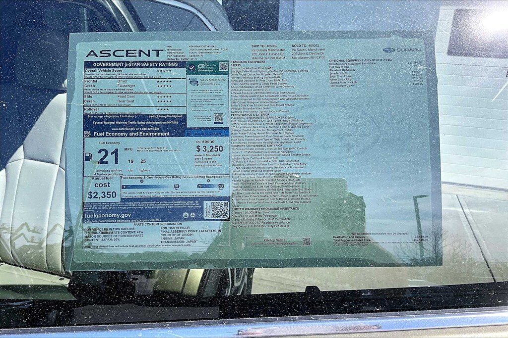 So far... so good... reflections about my nearly 1-year old 2020 Subaru Ascent Touring. I spent 2 years exploring the 3-row cross-over market segment and finally ended up where I started my search and that was with the purchase of the Ascent Touring. In my humble opinion, the Ascent offered everything I wanted, nothing I didn't want, and zero compromises versus its competition. When all was said and done, I walked out of the dealership with 0% APR and the total price paid including tags and taxes = $41,500; which I felt and still feel was a wonderful price and value. Maintenance - Zero issues or concerns. My car has been back to the dealer for 2 oil changes and 1 tire rotation so far. Average Fuel Economy - Mixed driving over 9K miles has given me back exactly 22 MPG. Not bad. Not super awesome either. But is what I expected. Driving experience - The Ascent handles everyday driving very well. Excellent visibility, very sure-footed, responsive, relatively quiet, and smooth. Turbo lag is barely noticeable and you can definitely out-run anything on the highway when needed. Interior - Very nice fit and finish and much more upscale versus the competition in this segment at this price point. The Harmon/Kardon stereo sounds great. Quirks - Subaru has been using a CVT for a decade and this is my first car with a CVT. I have noticed that the CVT is louder (noticeable whine) than my old automatic and makes a rather disconcerting 'chirp' when cold and shifting into Drive. However, this 'chirp' is normal for a CVT when cold due to the pulley's filling up with Transmission Fluid. Otherwise, I appreciate the smoothness and efficiency of the CVT and it seems very well matched to the engine. Bottom Line - I have no regrets and would purchase this car again versus the competition in this segment. So far it has been a joy to drive and is as safe a car as you can get.
