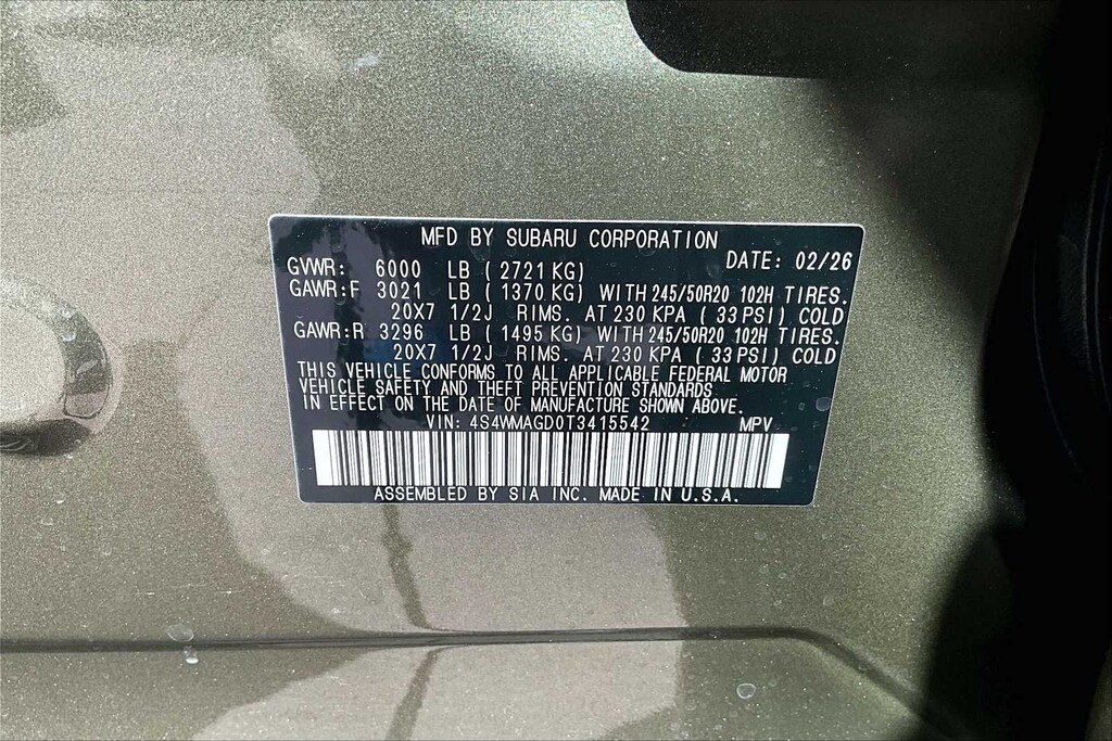 Leather Seats, Third Row Seat, Navigation, Sunroof, Panoramic Roof. Subaru Limited with Autumn Green Metallic exterior and Warm Ivory interior features a 4 Cylinder Engine with 260 HP at 5600 RPM*.