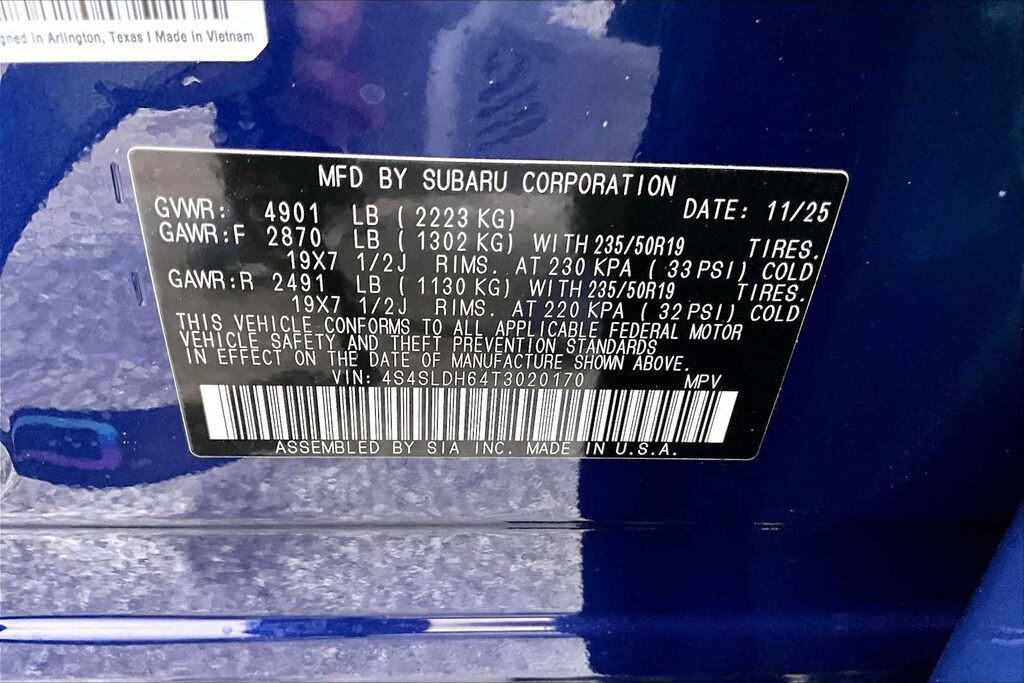• Front tires: 235/50VR19.0