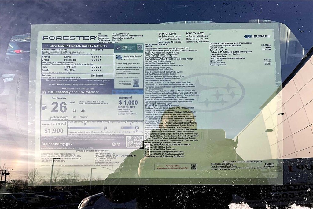 I bought this recently from Granite Subaru in Hudson, NH and I am so pleased I did. The Premium trim comes with great features AWD, Multiple cameras for safety, lane departure alert, 12" Media Screen with CarPlay, Panaramic Sunroof, roof racks, and much more. The size, features and gas mileage fit my life perfectly.
