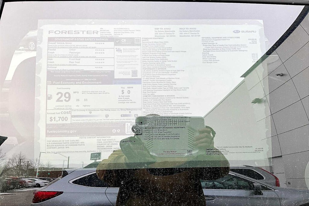I bought this recently from Granite Subaru in Hudson, NH and I am so pleased I did. The Premium trim comes with great features AWD, Multiple cameras for safety, lane departure alert, 12" Media Screen with CarPlay, Panaramic Sunroof, roof racks, and much more. The size, features and gas mileage fit my life perfectly.