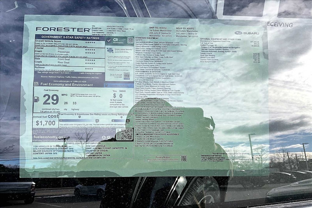 I bought this recently from Granite Subaru in Hudson, NH and I am so pleased I did. The Premium trim comes with great features AWD, Multiple cameras for safety, lane departure alert, 12" Media Screen with CarPlay, Panaramic Sunroof, roof racks, and much more. The size, features and gas mileage fit my life perfectly.