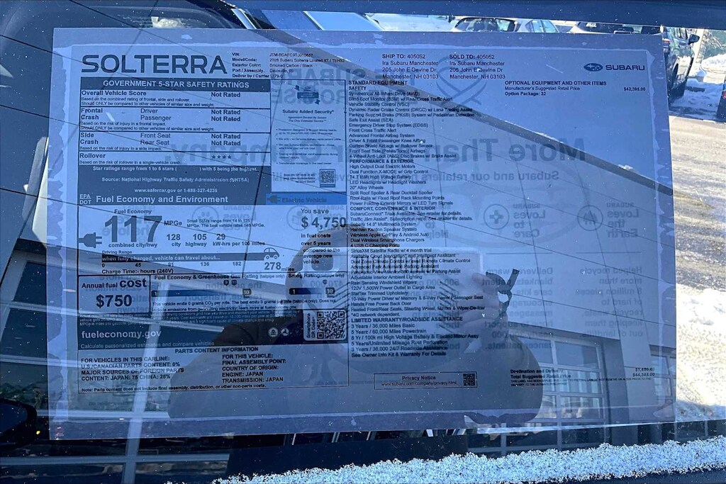 I traded my 2023 Subaru Crosstrek Premium for a 2024 Subaru SOLTERRA Premium and haven’t looked back. The improvement in road handling, speed, pickup and smooth ride is like night and day. I can charge on my 240volt at home with the Subaru charger in six hours and fast charge in 40 minutes at a CMO charging station EVGo or Checkpoint. Safety features are extraordinary in that if you look away for a second you get a notification on the dash. The look and feel is astronomical and I’m just happy. I can’t wait to drive it up to Park City this winter with its powerful AWD.