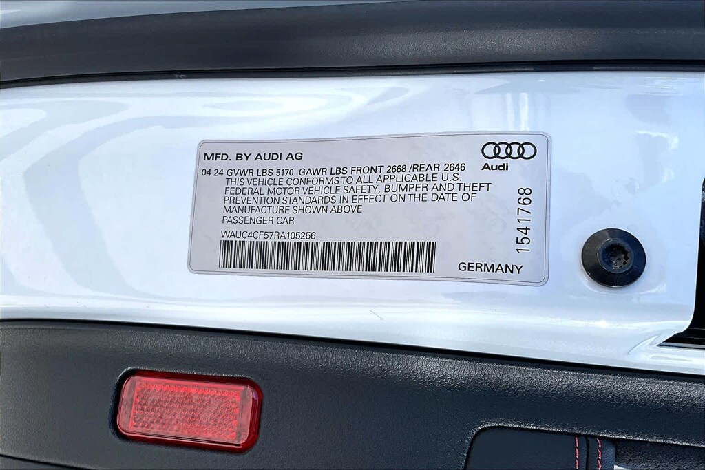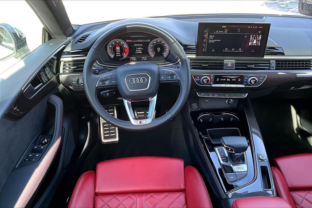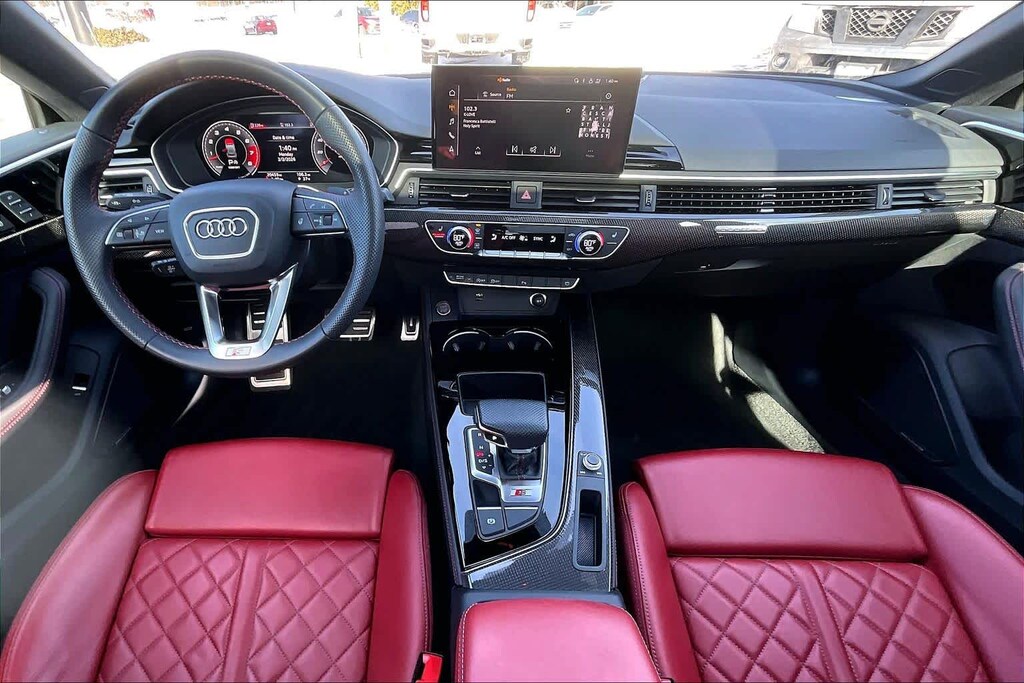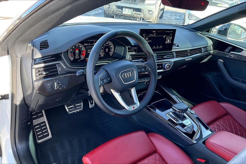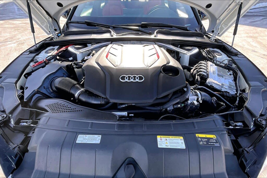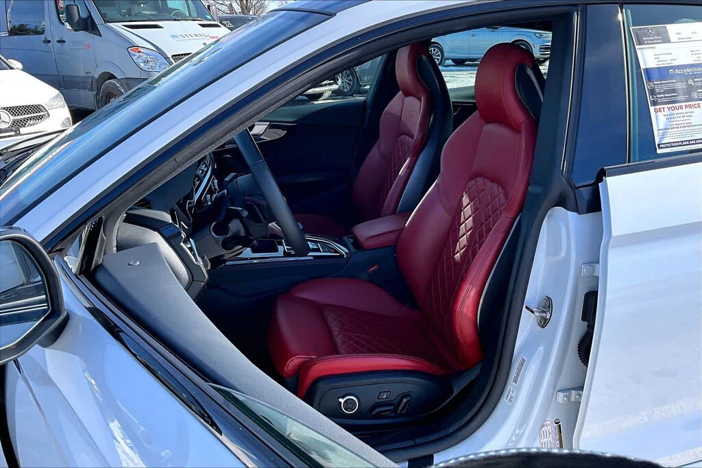 PREMIUM PLUS PACKAGE Wireless Phone Charging Pad, Power Folding Exterior Mirrors, Leatherette Covered Center Console & Door Armrests, 2 Rear USB Charge Ports, Top View Camera System, Bang & Olufsen Sound System w/3D Sound, Alarm System w/Motion Sensor, Auto-Dimming Exterior Mirrors w/Memory, SiriusXM w/360L, 3-month Platinum Plan trial subscription, Audi Advanced Key, keyless engine start/stop and entry, doors and trunk, Audi Side Assist w/Pre Sense Rear, Driver Seat Memory, Audi Virtual Cockpit Plus, BLACK OPTIC PLUS PACKAGE Black Exterior Mirror Housings & Exhaust Tips, Wheels: 20 5-Twin-Spoke Polygon Design, Bi-color finish, Tires: 265/30R20 94Y XL Summer, Black Rear Lip Spoiler, Black Fender Badges, Black Exterior Trim, Black Audi Rings & Badges, MAGMA RED, FINE NAPPA LEATHER SEATING SURFACES, GLACIER WHITE METALLIC, AUDI GUARD PROTECTION KIT Cargo Mat, All-Weather Floor Mats, AUDI S BEAM: lower door trim LED light displaying S logo, Front doors only.