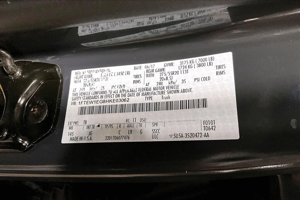 EQUIPMENT GROUP 101A MID 4.2 Productivity Screen in Instrument Cluster, compass, XL Power Equipment Group, Power Door Locks, flip key and integrated key transmitter keyless-entry (includes Autolock), MyKey, Owner controls feature, Power Glass Sideview Mirrors w/Black Skull Caps, manual-folding, Power Front & Rear Windows, Power Tailgate Lock, Illuminated Entry, Perimeter Alarm, SYNC, enhanced voice recognition communication and entertainment system, 911 assist, 4.2 LCD display in center stack, Applink and 1 smart charging USB port, DELETES auxiliary audio input jack, Cruise Control, Radio: AM/FM Stereo/Single-CD Player, 6 speakers, ENGINE: 3.5L V6 ECOBOOST auto start/stop, 3.31 Axle Ratio, GVWR: 7,000 lbs Payload Package, STX APPEARANCE PACKAGE STX Sport Box Decal, Manual Driver/Passenger Lumbar, Privacy Glass, Rear Window Defroster, SYNC 3, enhanced voice recognition communications and entertainment system, 8 LCD capacitive touchscreen in center stack w/swipe capability, pinch-to-zoom capability included w/available voice-activated touchscreen navigation system, AppLink, 911 Assist, Apple CarPlay® and Android Auto® and 2 smart charging USB ports, Box Side Decal, Fog Lamps, Tires: P275/55R20 BSW AT, 275/65R 18 OWL all-season/all-terrain spare tire, Wheels: 20 Machined-Aluminum, flash gray painted pockets, Black Billet Style Grille w/Body-Color Surround, black mesh insert, Driver/Passenger Seat Back Map Pocket, Body-Color Front & Rear Bumpers, body-color front fascia, MAX TRAILER TOW PACKAGE max towing capability up to 12,200 lbs, and upgraded rear bumper, Note: Ordering the Max Trailer Tow Package does not include Trailer Tow Mirrors, Trailer Tow Mirrors are a standalone option and must be ordered separately, (Option Code: 54M or 54Y/59S), Auxiliary Transmission Oil Cooler, Integrated Trailer Brake Controller, Electronic Locking w/3.55 Axle Ratio, Class IV Trailer Hitch Receiver, towing capability up to 5,000 lbs, on 3.5L Ti-VCT engine (998) and 2.7L EcoBoost engine (99P) or up to 7,000 lbs, on 3.5L EcoBoost engine (99G) and 5.0L V8 engine (99F), smart trailer tow connector and 4-pin/7-pin wiring harness, Extended Range 36 Gallon Fuel Tank, Engine Oil Cooler, Upgraded Front Stabilizer Bar, TRANSMISSION: ELECTRONIC 10-SPEED AUTOMATIC tow/haul mode and sport mode, SPRAY-IN BEDLINER (PRE-INSTALLED) Custom Accessory, MANUAL-FOLDING PWR GLASS TRAILER TOW MIRROR (FLT) Manually telescoping heated, turn signal and black skull caps, TAILGATE STEP W/TAILGATE LIFT ASSIST, REVERSE SENSING SYSTEM, BLACK PLATFORM RUNNING BOARDS, REAR VIEW CAMERA W/DYNAMIC HITCH ASSIST, RADIO: SINGLE-CD W/SIRIUSXM SATELLITE, Service is not available in Alaska and Hawaii, Subscriptions to all SiriusXM services are sold by SiriusXM after trial period, If you decide to continue service after your trial, the subscription plan you choose will automatically renew thereafter and you will be charged according to your chosen payment method at then-current rates, Fees and taxes apply, To cancel you must call SiriusXM at 1-866-635-2349, See SiriusXM Customer Agreement for complete terms at www.siriusxm.com, All fees and programming subject to change, Sirius, XM and all related marks and logos are trademarks of Sirius XM Radio Inc.