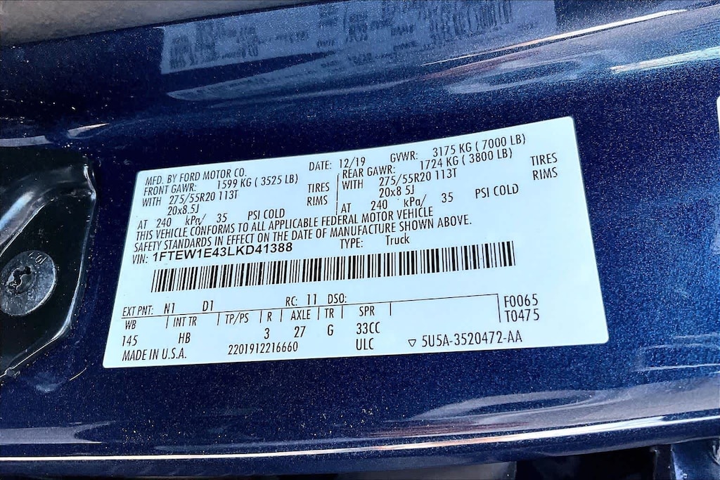 EQUIPMENT GROUP 502A LUXURY Rain-Sensing Wipers, Power Tilt/Telescoping Steering Column w/Memory, Lariat Bed Utility Package, BoxLink w/4 premium locking cleats and LED box lighting, Windshield Wiper De-Icer, Remote Start System w/Remote Tailgate Release, Lariat Chrome Appearance Package, 2 chrome front tow hooks, Single-Tip Chrome Exhaust, Chrome Angular Step Bars, Chrome Door & Tailgate Handles w/Body-Color Bezel, Wheels: 18 Chrome-Like PVD, Chrome 2-Bar Grille w/4 Minor Bars, painted silver surround and background mesh, Chrome Skull Caps on Exterior Mirrors, LED Sideview Mirror Spotlights, high-intensity LED security approach lamps, Radio: B&O Sound System by Bang & Olufsen, HD Radio, SiriusXM radio, 10 speakers and subwoofer, Note: When ordered w/voice-activated navigation system, ENGINE: 3.5L V6 ECOBOOST auto start-stop technology, GVWR: 7,000 lbs Payload Package, 3.31 Axle Ratio, TWIN PANEL MOONROOF, ADAPTIVE CRUISE CONTROL stop-and-go and pedestrian detection, TECHNOLOGY PACKAGE 360 Camera w/Split-View Display, dynamic hitch assist, Active Park Assist, TRAILER TOW PACKAGE Towing capability up to 11,300 lbs, Engine Oil Cooler, Pro Trailer Backup Assist, Upgraded Front Stabilizer Bar, VOICE-ACTIVATED TOUCHSCREEN NAVIGATION pinch-to-zoom capability, SiriusXM Traffic and Travel Link, Note: SiriusXM Traffic and Travel Link includes a, SiriusXM Traffic and Travel Link service is not available in Alaska or Hawaii, After your trial period ends, SiriusXM audio and data services each require a subscription sold separately, or as a package, by SiriusXM Radio Inc, See SiriusXM Customer Agreement for complete terms at www.siriusxm.com, All fees and programming subject to change, Trial subscriptions not available in Alaska and Hawaii, TELESCOPING POWER GLASS TRAILER TOW MIRRORS W/HEAT power-folding, PowerScope, turn signal, memory, auto-dimming feature (drivers side) and black skull caps, TRANSMISSION: ELECTRONIC 10-SPEED AUTOMATIC selectable drive modes: normal/tow-haul/snow-wet/EcoSelect/sport (STD).