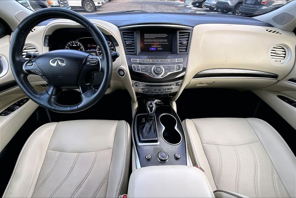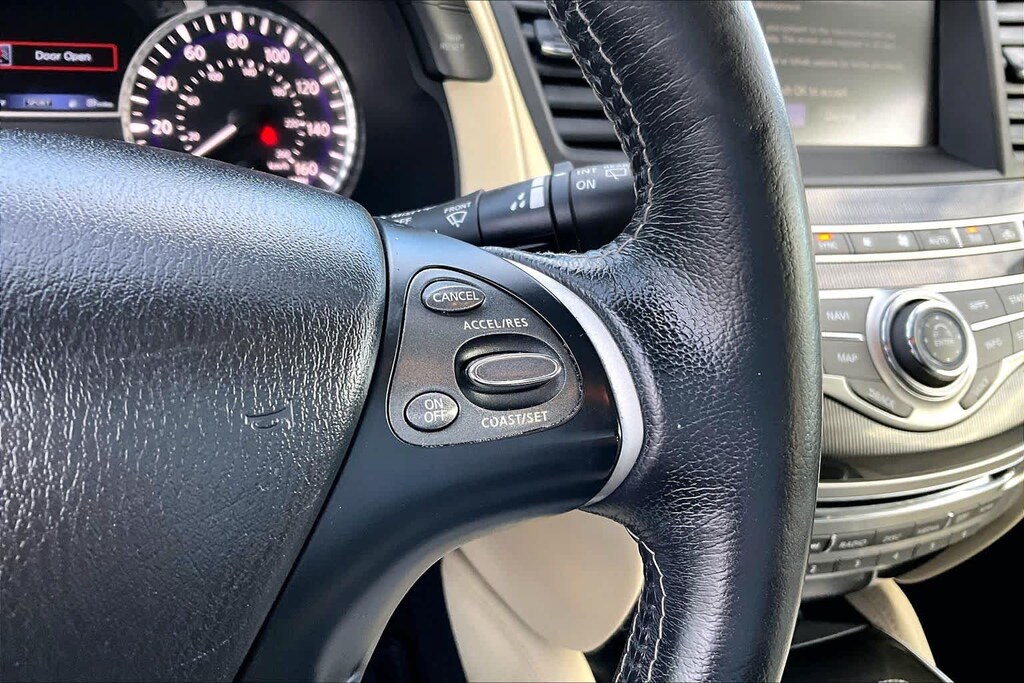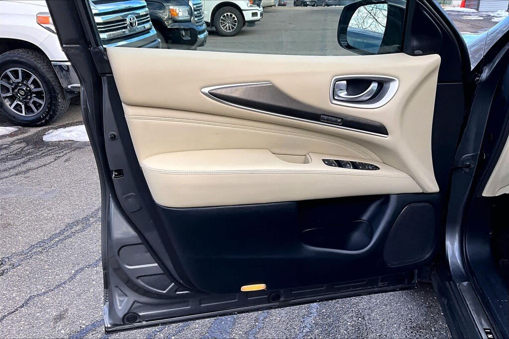 ESSENTIAL PACKAGE Front & Rear Sonar Sensors (2FR/2RR), Around View Monitor w/Moving Object Detection, Rain-Sensing Front Windshield Wipers, INFINITI InTouch w/Navigation & InTouch Services, lane guidance, 3D building graphics, 4-year complimentary trial of select package, 1-year complimentary trial of premier package and SiriusXM Traffic w/4-year complimentary trial access to real-time traffic, weather, fuel prices, stocks, sports and movie times, Voice Recognition for Navigation Functions, 1-shot voice destination entry, Illuminated Kick Plates (IKP).