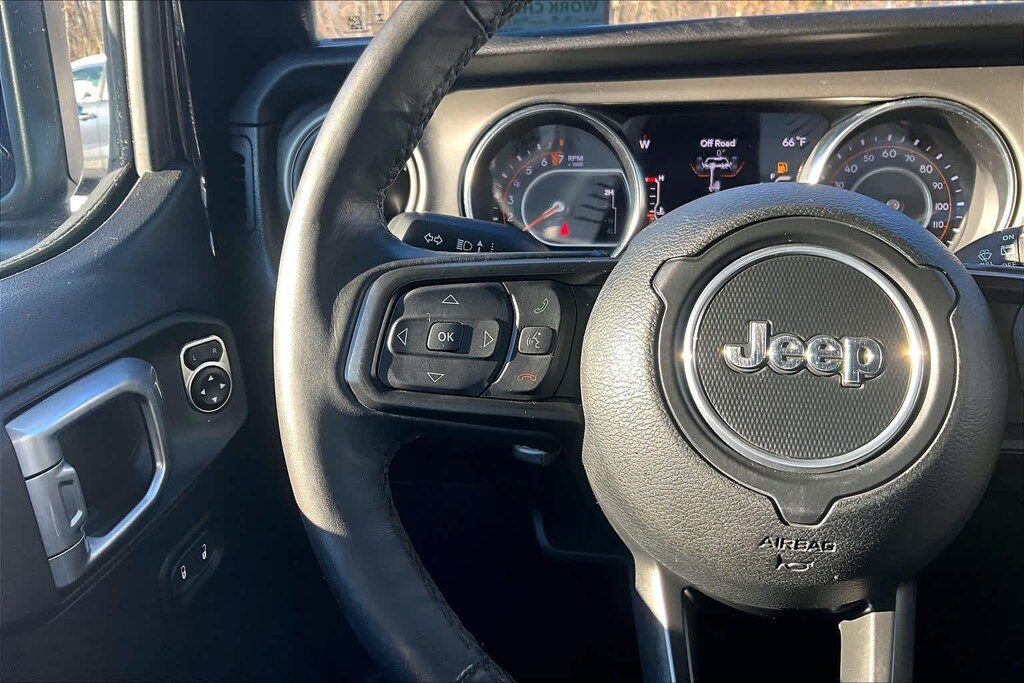 TRANSMISSION: 8-SPEED AUTOMATIC (850RE) Tip Start, Dana M200 Rear Axle, Selec-Speed (TM) Control, QUICK ORDER PACKAGE 24S SPORT S Engine: 3.6L V6 24V VVT UPG I w/ESS, Transmission: 8-Speed Automatic (850RE), USB Host Flip, Speed Sensitive Power Locks, Automatic Headlamps, Leather Wrapped Steering Wheel, Google Android Auto®, R1234YF A/C Refrigerant, Integrated Center Stack Radio, 7.0 Touchscreen Display, Apple CarPlay®, GPS Antenna Input, Front 1-Touch Down Power Windows, Sport S, Power Heated Mirrors, Security Alarm, Remote Keyless Entry, Sun Visors w/Illuminated Vanity Mirrors, 8.4 RADIO & PREMIUM AUDIO GROUP Off-Road Info Pages, SiriusXM Traffic Plus, Alpine Premium Audio System, 220 Amp Alternator, SiriusXM Satellite Radio, SiriusXM Radio Service, HD Radio, Radio: Uconnect 4C Nav w/8.4 Display, Rear View Auto Dim Mirror, For Details, Visit DriveUconnect.com, For More Info, Call 800-643-2112, Air Conditioning w/Auto Temp Control, 1-Yr SiriusXM Guardian Trial, GPS Navigation, SiriusXM Travel Link, 4G LTE Wi-Fi Hot Spot, Emergency/Assistance Call, 8.4 Touchscreen Display, Air Filtering, BLACK 3-PIECE HARD TOP Freedom Panel Storage Bag, Rear Window Defroster, Rear Window Wiper/Washer, No Soft Top, COLD WEATHER GROUP Heated Steering Wheel, Heated Front Seats, Leather Wrapped Steering Wheel, TECHNOLOGY GROUP Front Door Locks 2-Door Passive Entry, Cluster 7.0 TFT Color Display, SiriusXM Satellite Radio, SiriusXM Radio Service, For More Info, Call 800-643-2112, Air Conditioning w/Auto Temp Control, Air Filtering, CONVENIENCE GROUP Universal Garage Door Opener, ENGINE: 3.6L V6 24V VVT UPG I W/ESS (STD).
