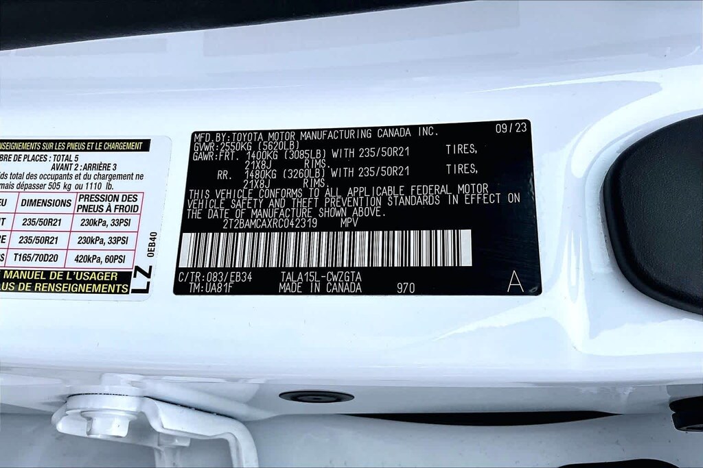 • Rear tires: 235/50VR21.0