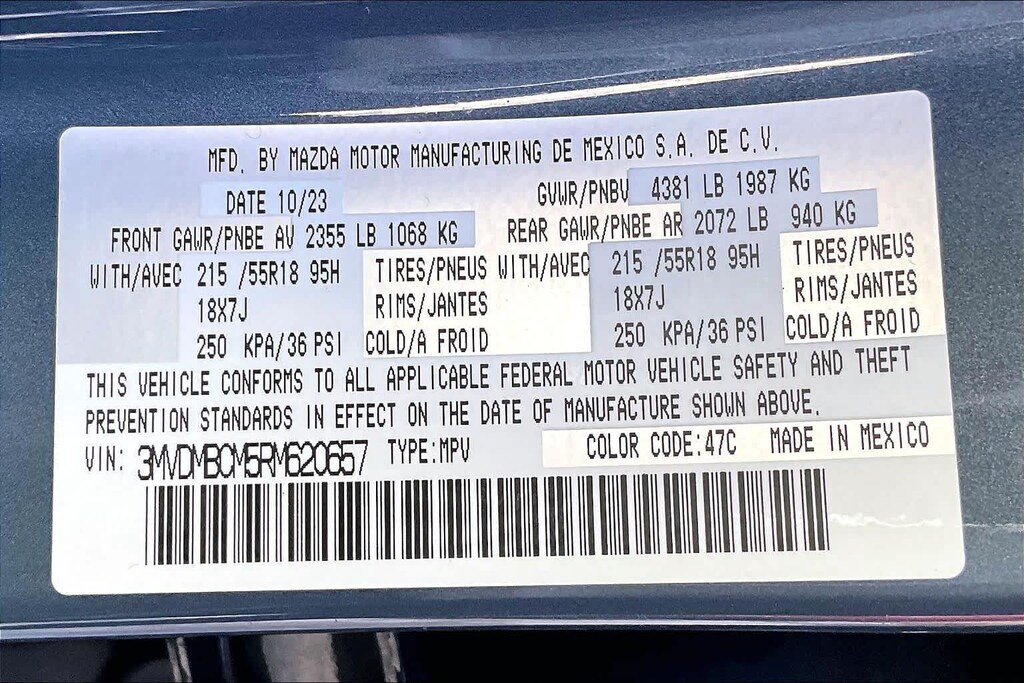 • Tracker system: Mazda Connected Services (3-year trial subscription included)