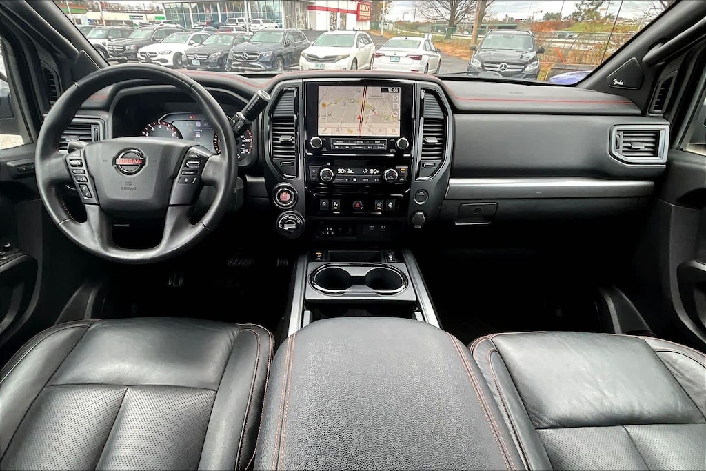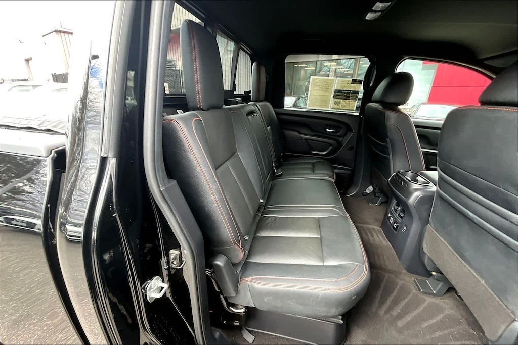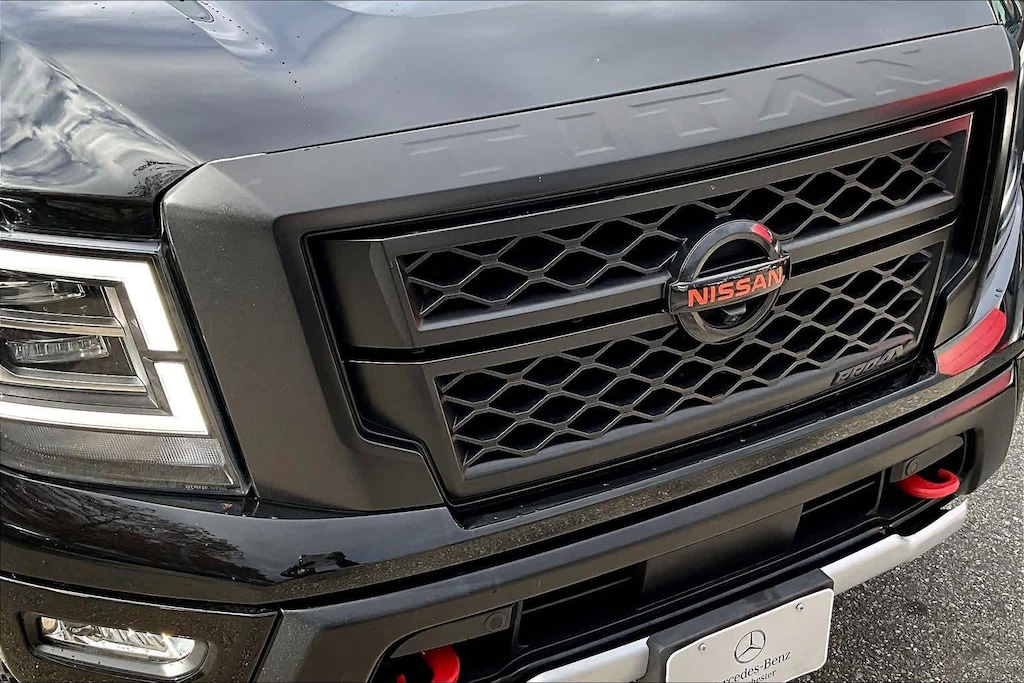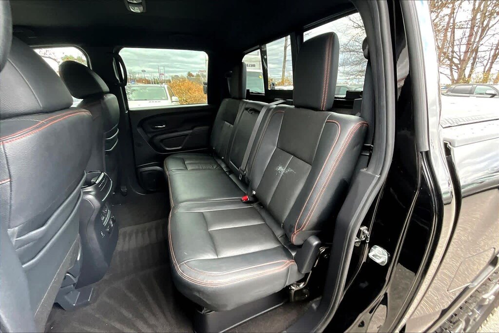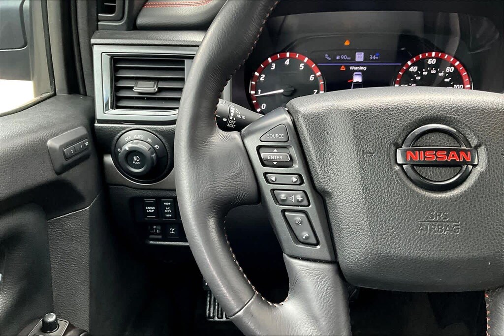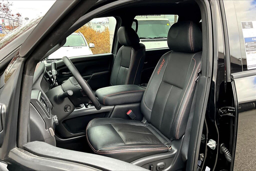 PRO-4X CONVENIENCE PACKAGE Trailer Light Check Function On Key Fob, 4-Way Power Assist Seat, Memory Driver Seat w/Auto Entry/Exit Feature, Heated Driver & Passenger Seat, Heated Rear Seats, Remote Engine Start on Key Fob, Heated Power Tilt/Telescopic Steering Wheel, memory, Power Folding Auto Dimming Outside Mirrors, memory and reverse auto tilt, Puddle Lamps, Intelligent Around View Monitor (I-AVM), Moving Object Detection (MOD), PRO-4X UTILITY PACKAGE Proximity Activation, LED signature headlamps and cargo lamp, 110V Outlet in Bed, Utilitrack System w/4 Tie-Down Cleats, Power Sliding Rear Window w/Defogger, LED Tailgate Area Illumination, Trailer Brake Controller, LED Under Rail Bed Lighting, Rear Utility Bed Step, Fender Premium Audio System w/12 Speakers, amplifier, underseat subwoofer, center channel speaker and front and rear tweeters, Front & Rear Parking Sensors, Electronic Locking Tailgate, RUGGED STEP BOARDS W/PRO-X4 INSERT.