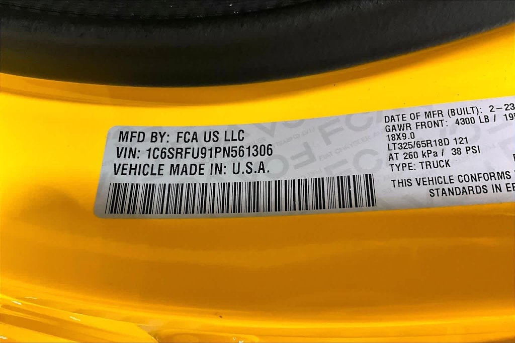 • Rear tires: 325/65RR18.0D