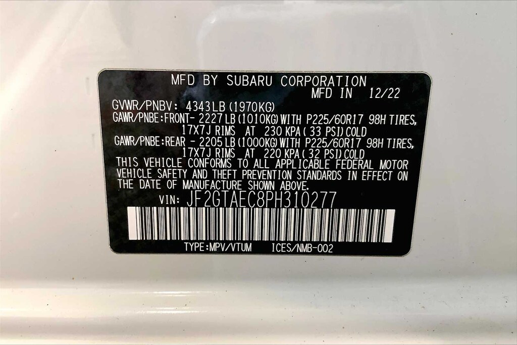 MOONROOF & BSD W/RCTA & POWER DRIVER SEAT liquid filled rubber engine mounts, digital fuel gauge w/fuel door position indicator, digital/digital dual-mode trip odometer, digital speedometer, door ajar indicator, eco gauge (fuel economy), engine oil level warning indicator, current and average fuel economy A and B and distance to empty, journey travel time and distance, paddle shift ratio position indicator, road surface freeze warning indicator, welcome/good-bye message, windshield washer fluid low warning indicator, X-MODE operation indicator/control switch, advanced adaptive cruise control (control system operation, ready/off/on/set/lane centering indicator) following distance setting, eyesight camera malfunction warning, follow distance setting indicator, hold indicator, lead vehicle.