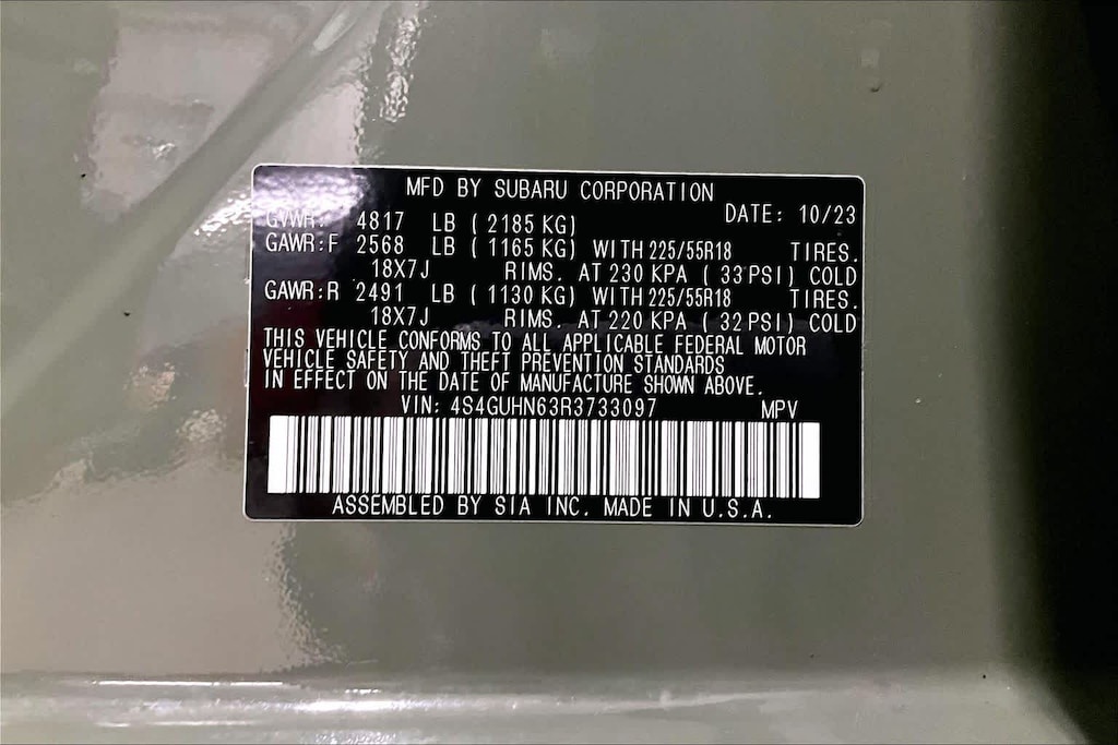 • Front tires: 225/55VR18.0
