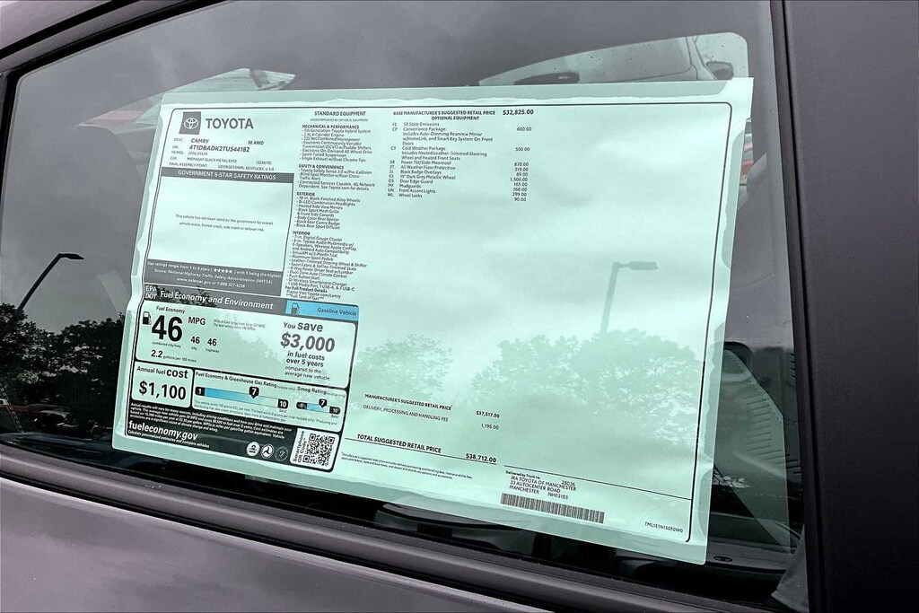 POWER TILT/SLIDE MOONROOF Removes overhead sunglasses storage, CONVENIENCE PACKAGE Auto-Dimming Rearview Mirror w/HomeLink, Smart Key System on Front Doors, Smart Access on front doors and trunk, push button start, remote keyless entry system and remote illuminated entry, COLD WEATHER PACKAGE Heated Leather Steering Wheel w/Paddle Shifters, Heated Front Seats, ALL WEATHER FLOOR PROTECTION (TMS).