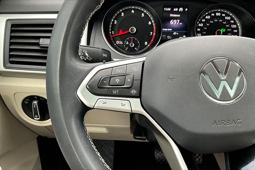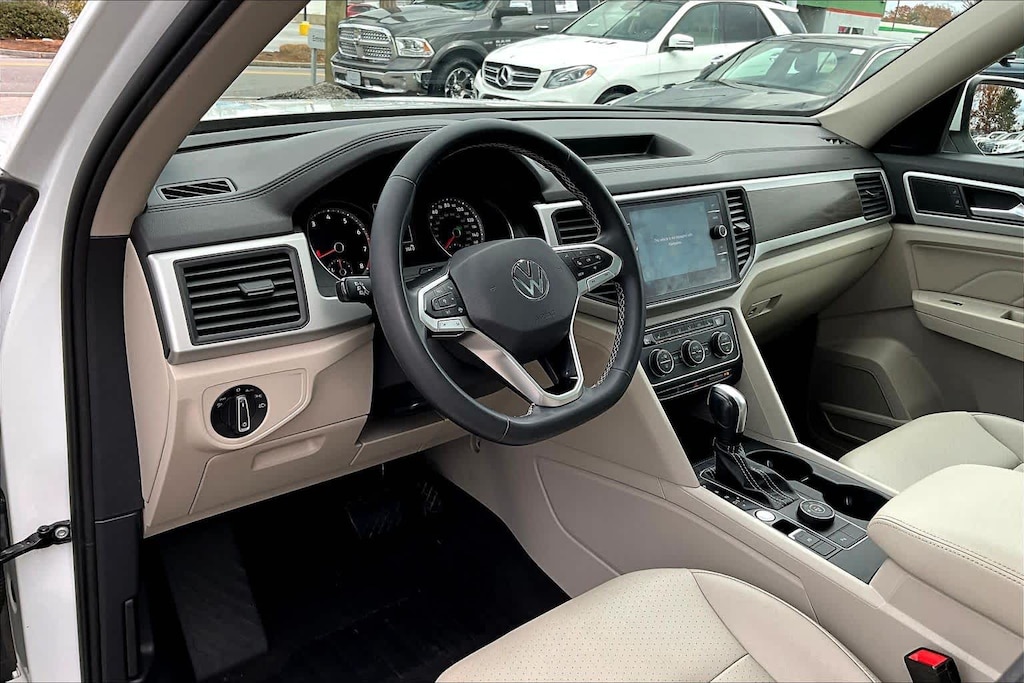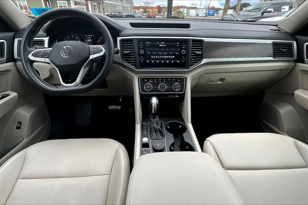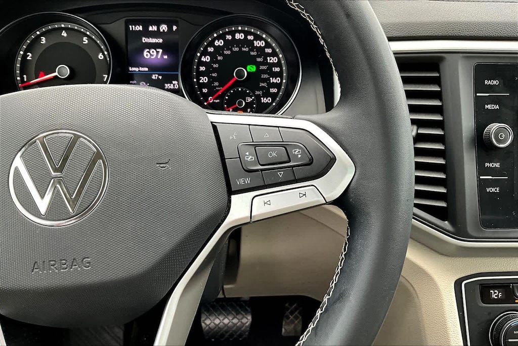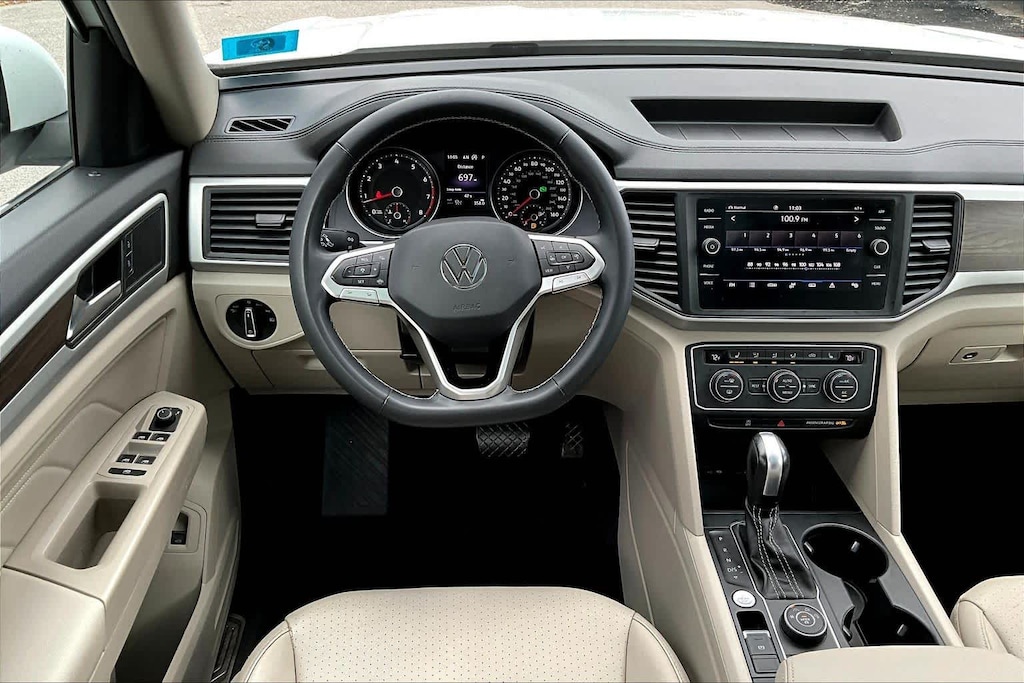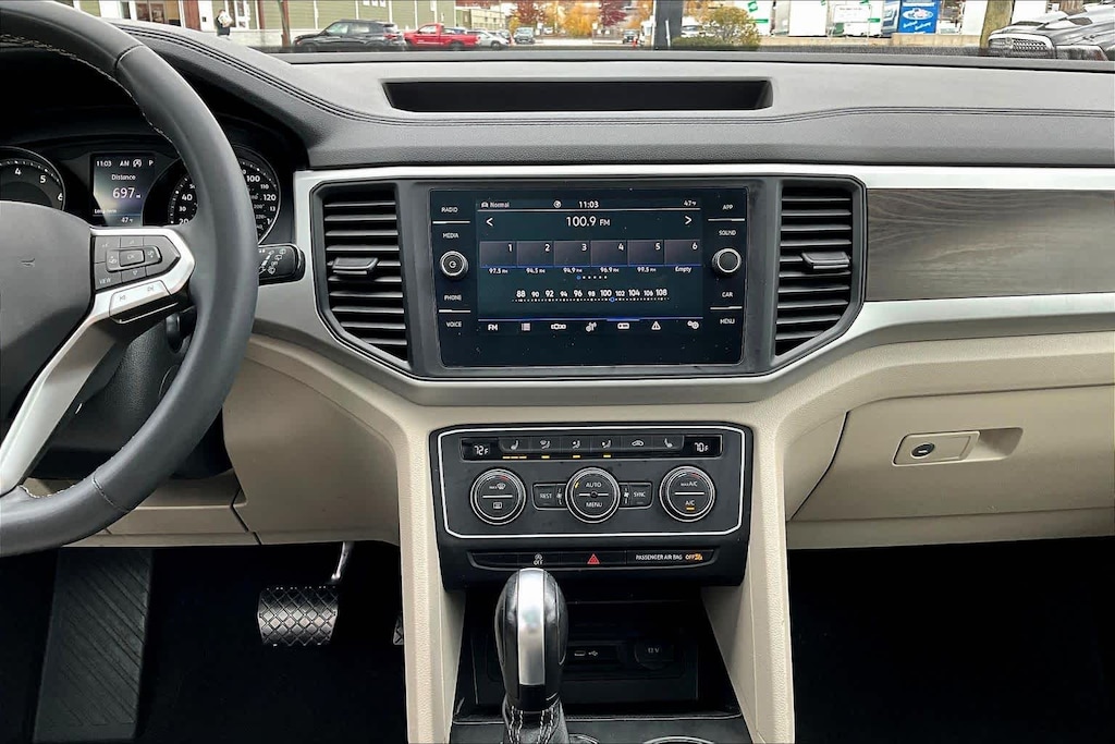The Atlas has an infotainment system that is easy to use and intuitive, and it allows for swiping and pinch zooming. Apple Car Play is awesome! Surprisingly, some manufacturers have not integrated this feature at this time. The digital instrument panel has a very nice, modern look, and it offers 5 or 6 different views. One of the really cool things about the Atlas- you can display the nav map in the middle of the instrument panel. Additionally, you can make the map bigger and the gauges smaller, which allows you to see more map detail- a really nice option. The car even has an altimeter, which is really cool to me (I’m a pilot by trade). Not so much for my wife…